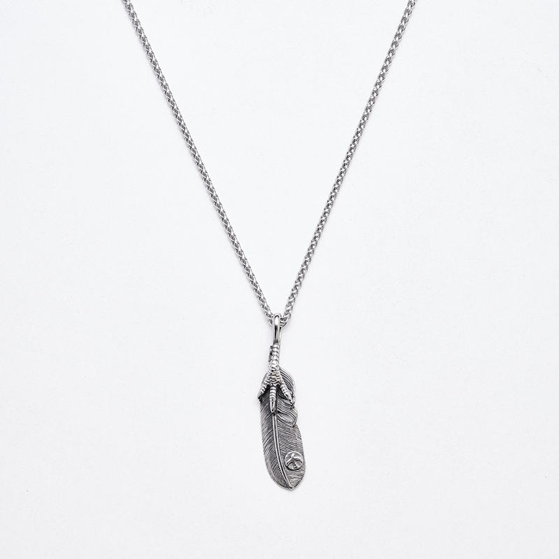 MEN’S SILVER FEATHER PENDANT NECKLACE
